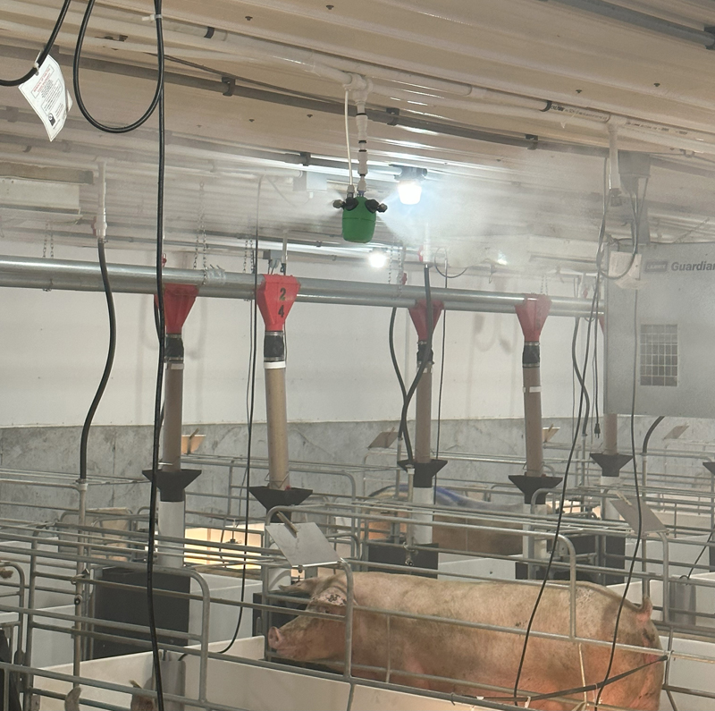 The micro-spray system works by converting an organic, EPA-registered disinfectant (Paerolyte) into tiny vapor particles, which diffuse naturally throughout an entire treatment area, killing bacteria and viruses and protecting livestock. The micro-spray system can be used during any stage of the growth cycle as part of a biosecurity program to mitigate and control the spread of pathogens.